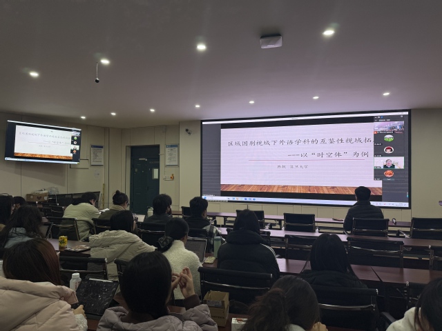 2025年11月17日晚19:00,外国语学院研究生学术活动月重要学术报告在4C-504教室成功举办。本次讲座特邀复旦大学外文学院教授、博士生导师陈靓担任主讲嘉宾,为外院师生带来了一场题为“区域国别视域下外语学科的科研路径拓展——以时空体为例”的精彩报告。