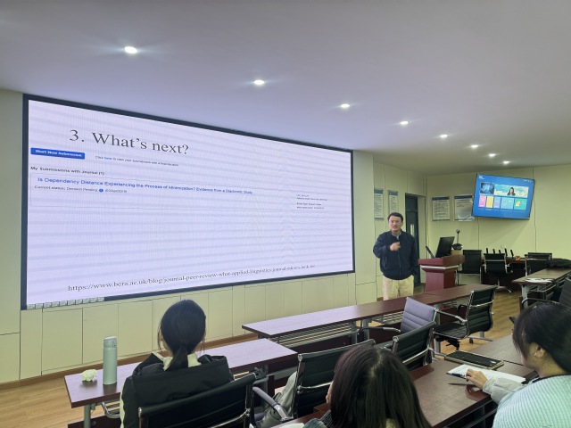 为提升学生国际学术发表能力,拓展语言学前沿研究视野,2025年11月24日下午2:30,伟德国际1949于4C504成功举办“语言学国际期刊学术论文发表:路径与经历”学术讲座。本次讲座特邀西南财经大学伟德国际1949教授、博士生导师文举担任主讲,由伟德国际1949,伟德国际1949始于英国副院长李学芹主持,学院部分教师及研究生到会参与。