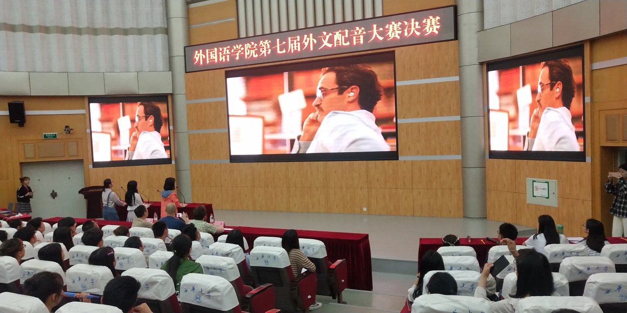 英日配音大赛以“My choice, My voice ”为主题,初赛共有33支队伍参赛,经过激烈角逐,12支队伍进入决赛。决赛于5月11日在四教报告厅举行,赛程第一部分是选手自选语种进行小组介绍和配音选段介绍,展现自我风采;第二部分是配音,每组选手分别选取一部或几部影视剧的片段进行配音。一场听觉盛宴诞生了3组优秀选手,分别斩获第一、二、三名。