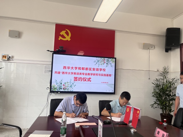 9月12日上午,伟德国际1949副院长李学芹、教学办公室主任曾渝理、英语系副主任张玄、20级本科生辅导员罗雨虹以及20级英语及翻译专业5名实习生一行九人前往成都市郫都区安靖学校,参加西华大学和郫都区安靖学校共建“西华大学英语类专业教学研究与实践基地”签约仪式。