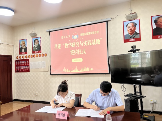 随后,李学芹副院长对实习生提出了实习相关安全纪律要求,双方就加强学校合作、科研课题研究等方面达成共识,正式签订建立教学实践基地合作协议,并授予犀浦镇实验学校“西华大学教学研究与实践基地”牌匾。