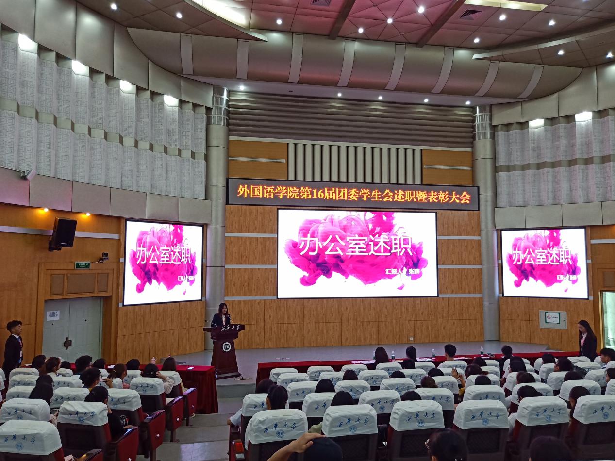 接下来,团委学生会各部门依次述职,由参会老师和主席团进行现场打分。11个部门的述职代表们围绕本学年各部门的年度活动概述、工作情况回顾、成果展示及自我评价等方面对工作进行了总结和反思,提出了各自对下一届团委学生会的期望。其中,学院青服队张炀、冯铭分别作为部长、干事代表进行发言。张炀分享了自己加入学生会的点滴成长,加入学生是实现“超我”的第一步,在这里有无限种可能使自己变得优秀。她说:“所有努力都会有人看在眼里,在你意想不到的时候告诉你,我叫它生活的惊喜”,希望在场的每一位都能在未来创造这样的惊喜,在“超我”的地方走的越来越远。冯铭对学生会表示了衷心的感谢和诚挚的敬意。回顾加入到学生会,她提到这里是一个发展自我潜力的机会,展示自我才华的平台,然而褪去对初入学生会的新鲜感更多的是一份责任,对于学生会即将换届,她希望学生会全体成员仍要做到作风严谨,诚恳做事,诚信务实,踏实走好每一步,为伟德国际1949,伟德国际1949始于英国团委学生会在新的征程中更加辉煌而不解奋斗。