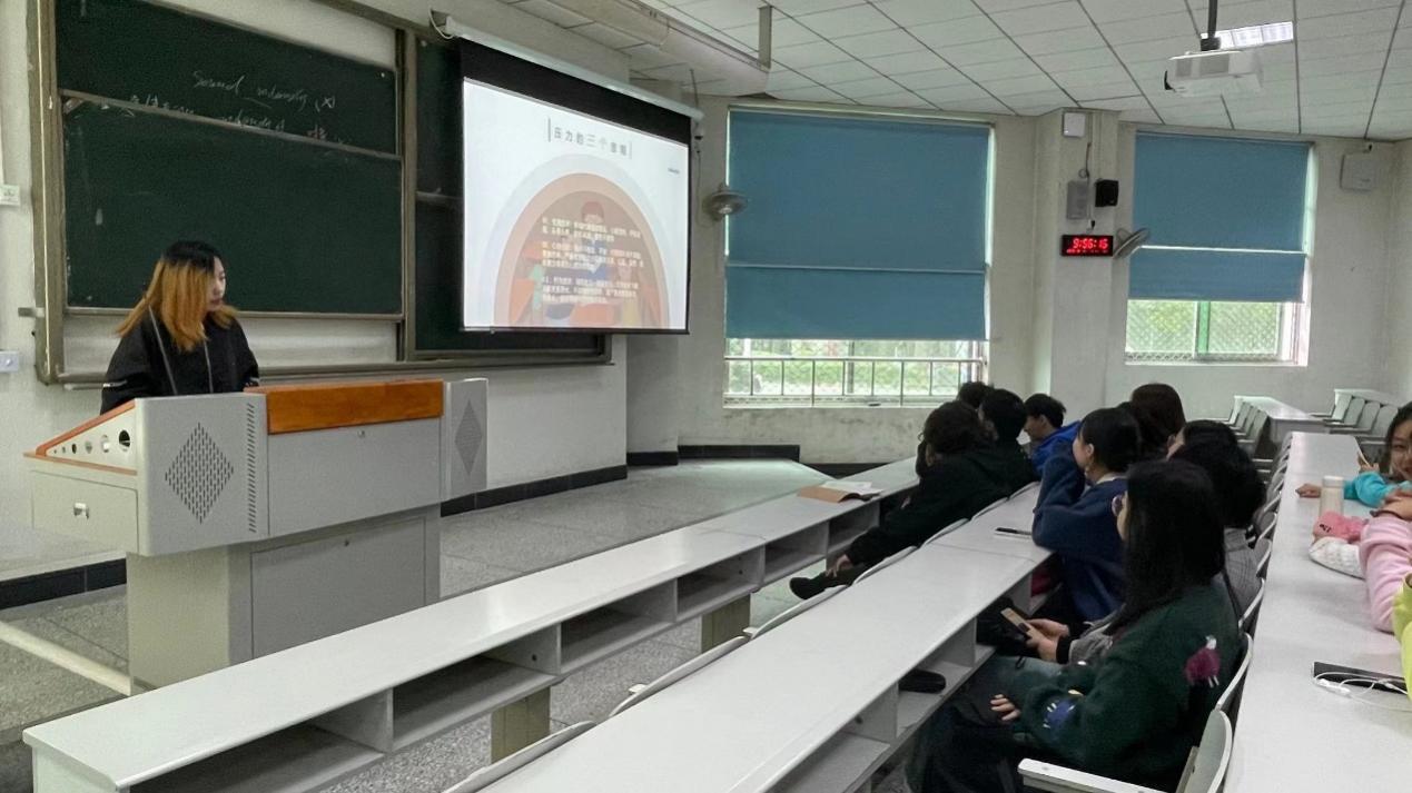 首先,由心理委员讲述了压力的定义是什么,让同学们了解到压力的三个主要表现。随后,指出了大学生常见的压力问题,主要是学习压力、人际交往压力、就业压力。紧接着带领大家学习了如何解决这三个压力。关于学习压力,我们应制定符合自己的学习目标,认真摸索适合自己的学习方法,主动学习并制定学习计划。对于人际交往问题,只需要做真实的自己,不融入不适合自己的圈子,专注于提升自己,专注享受自己的人生才是更重要的。关于就业方面的压力,询问自己内心最真实的想法,放慢步伐不着急做抉择,做好准备再出发。接着,针对日常生活中可能会遇到的一些小压力也分享了解决方法。