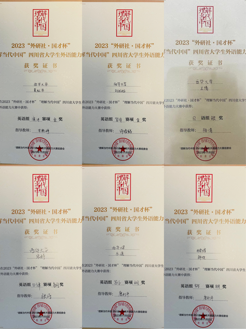 2023年11月4日至5日,2023“外研社·国才杯”“理解当代中国”四川省大学生外语能力大赛决赛在四川大学举办。本次大赛由四川省教育厅主办,四川大学承办,四川省普通高等学校外国语言文学类专业教学指导委员会、四川省高等教育学会高校外语专业委员会、外语教学与研究出版社共同协办。来自四川省内53所高校的600余名选手参加大赛。
