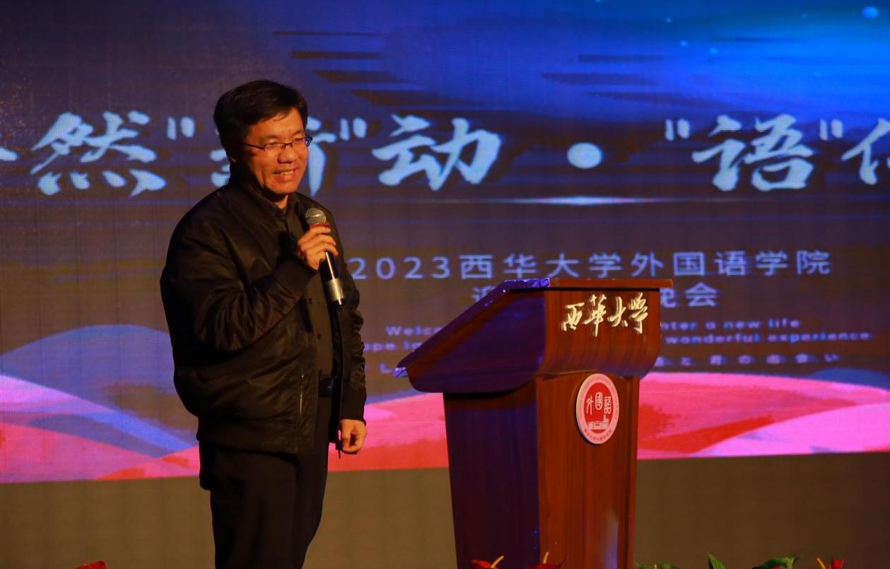 晚会正式开始前,伟德国际1949院长李国宏上台致辞。李院长将晚会主题“怦然‘新’动,‘语’你相遇”与西华学子的朝气和外院的办学理念相结合,表达了对外院学子的殷殷嘱托。李院长指出,当今世界风云变幻,“语”的作用更为突出,同学们身逢其时、重任在肩,衷心希望23级的同学们奠定扎实基础、搞好学科建设,唯有愉快学习、健康成长,方能不负时光,并祝愿23级的同学们可以在最纯粹的大学生活里奋勇向前,创造属于自己的精彩!