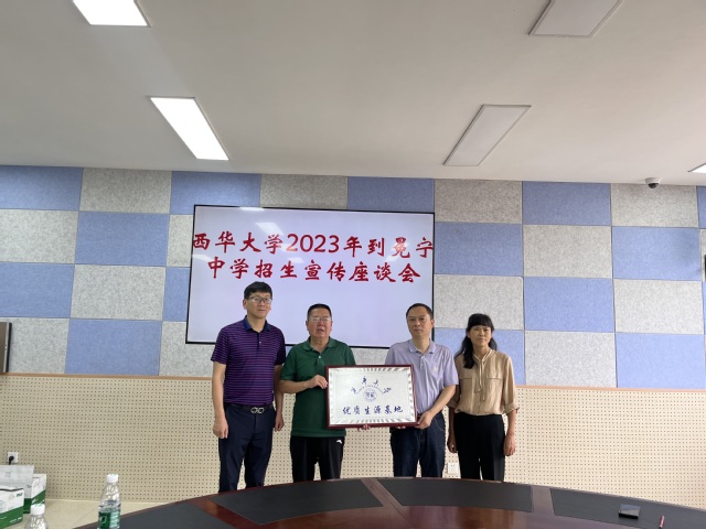 2023年7月13日,由学院党委副书记罗海、副院长李学芹、辅导员罗雨虹老师组成的伟德国际19492022年招生宣传小组,赴凉山州冕宁县四川省冕宁中学开展2023年西华大学招生宣传工作。13日下午3点,伟德国际1949招生宣传小组一行在冕宁中学会议室召开了西华大学-冕宁中学招生宣传座谈会。冕宁中学党委书记史光伟,校长陈绍燕、副校长俞开文和学校相关人员参加座谈会。