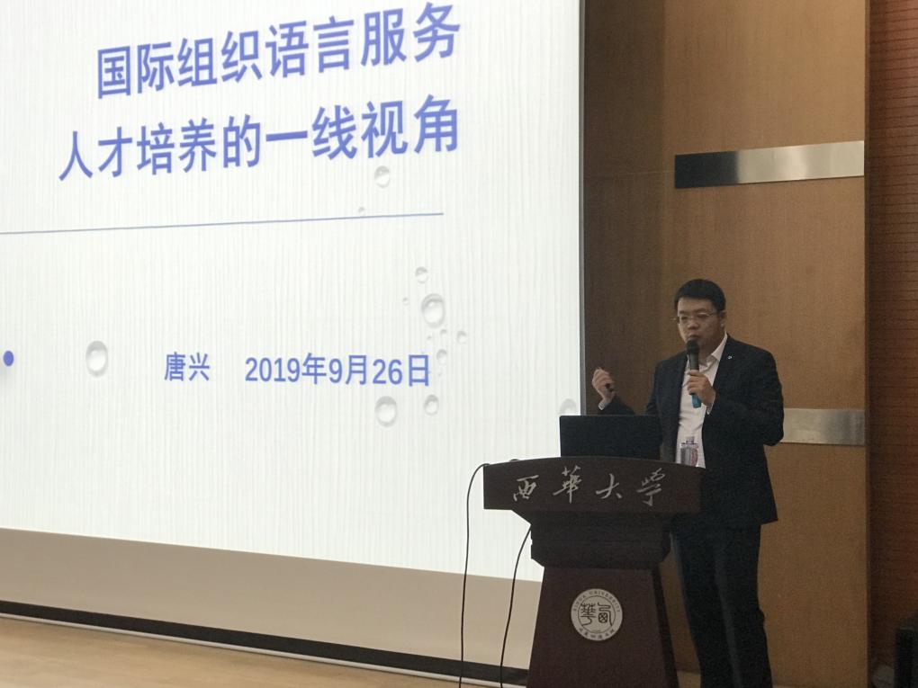 9月26日15:00图书馆报告厅内,策马集团唐兴董事长做了题为“国际组织语言服务人才培养一线视角”的讲座进行学术交流,学院2017、2018级全体同学参加本次讲座。