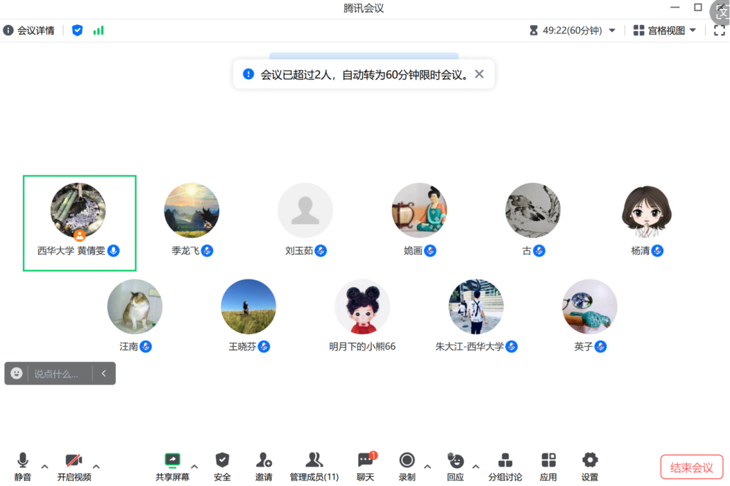9月1日晚上19点,日语专业在线上召开线上教学研讨会,郫都、宜宾校区全体日语专业老师参与了本次会议。本次会议的主题主要包括(1)课程思政研讨,(2)传达学校和学院新学期教学会议内容,(3)日语专业课程《日本文学史》教学探讨,做好开学教学准备。