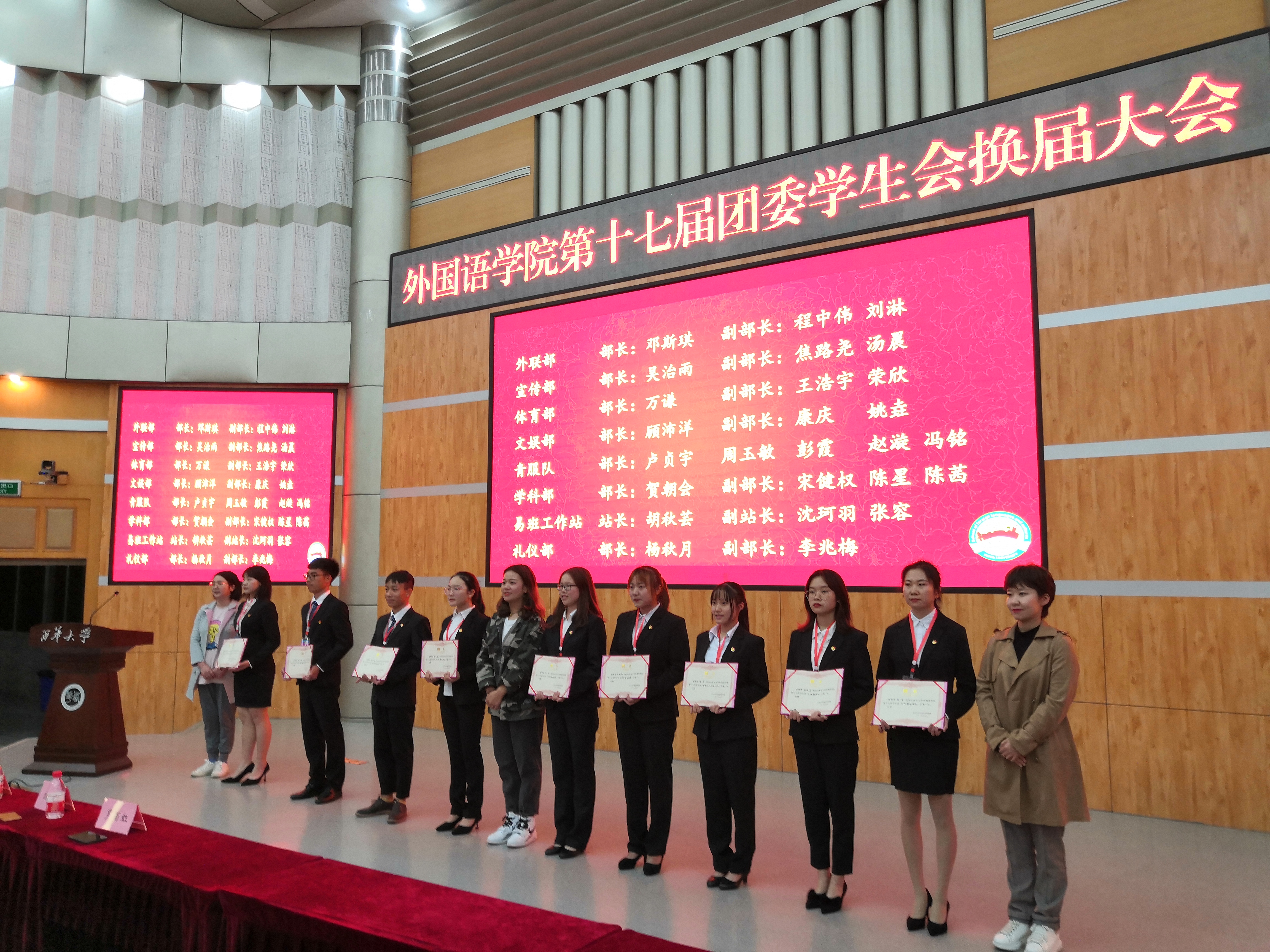 首先,主持人雷芳连介绍了出席本次大会的领导及老师,全体成员起立奏唱共青团团歌并观看了第十六届团委学生会风采视频。接下来,第十六届团委学生会主席张德婷回顾并总结了第十六届团委学生会的工作,代表第十六届学生会全体成员向老师们表示衷心的感谢,并对第十七届团委学生会全体成员给予殷切希望。紧接着,团委书记彭陈丽老师宣读第十七届团委学生会干部名单,领导及老师依次上台为干部们颁发聘书。