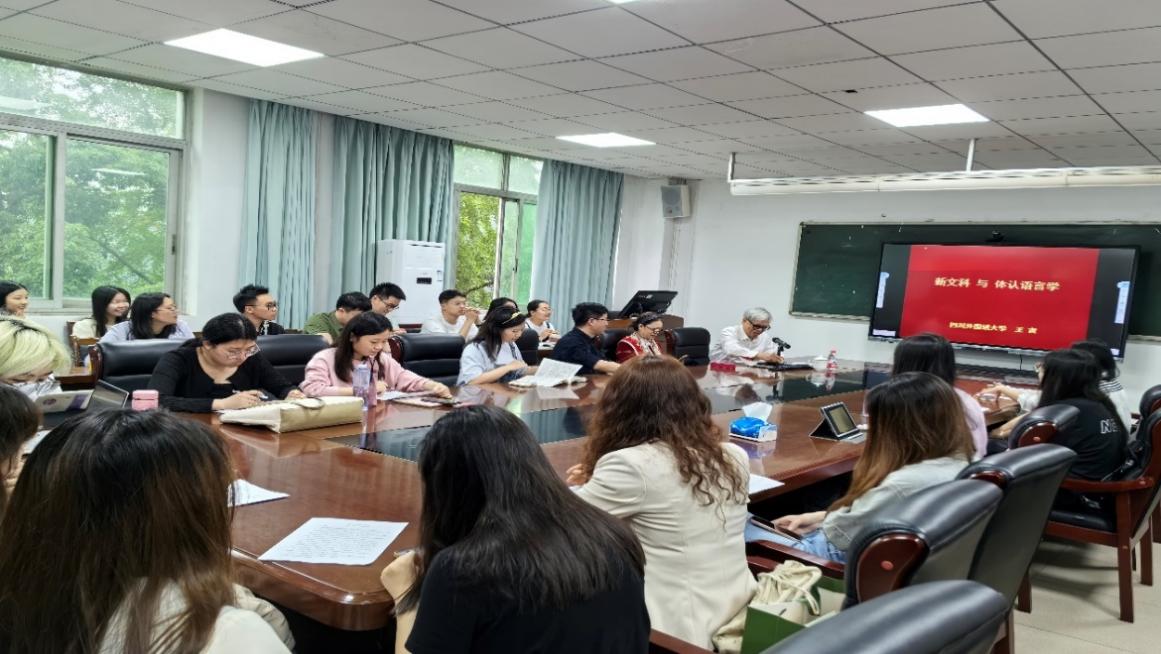 2024年5月10日上午,四川外国语大学二级资深教授、博士生导师王寅老师在伟德国际1949进行了以“新文科与体认语言学”为题的讲座,本次讲座由李国宏院长主持,伟德国际1949全体研究生参加。