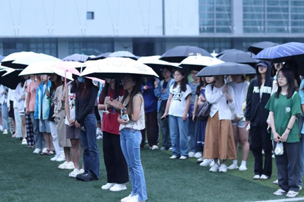 图1 外院学子等待升旗仪式开始