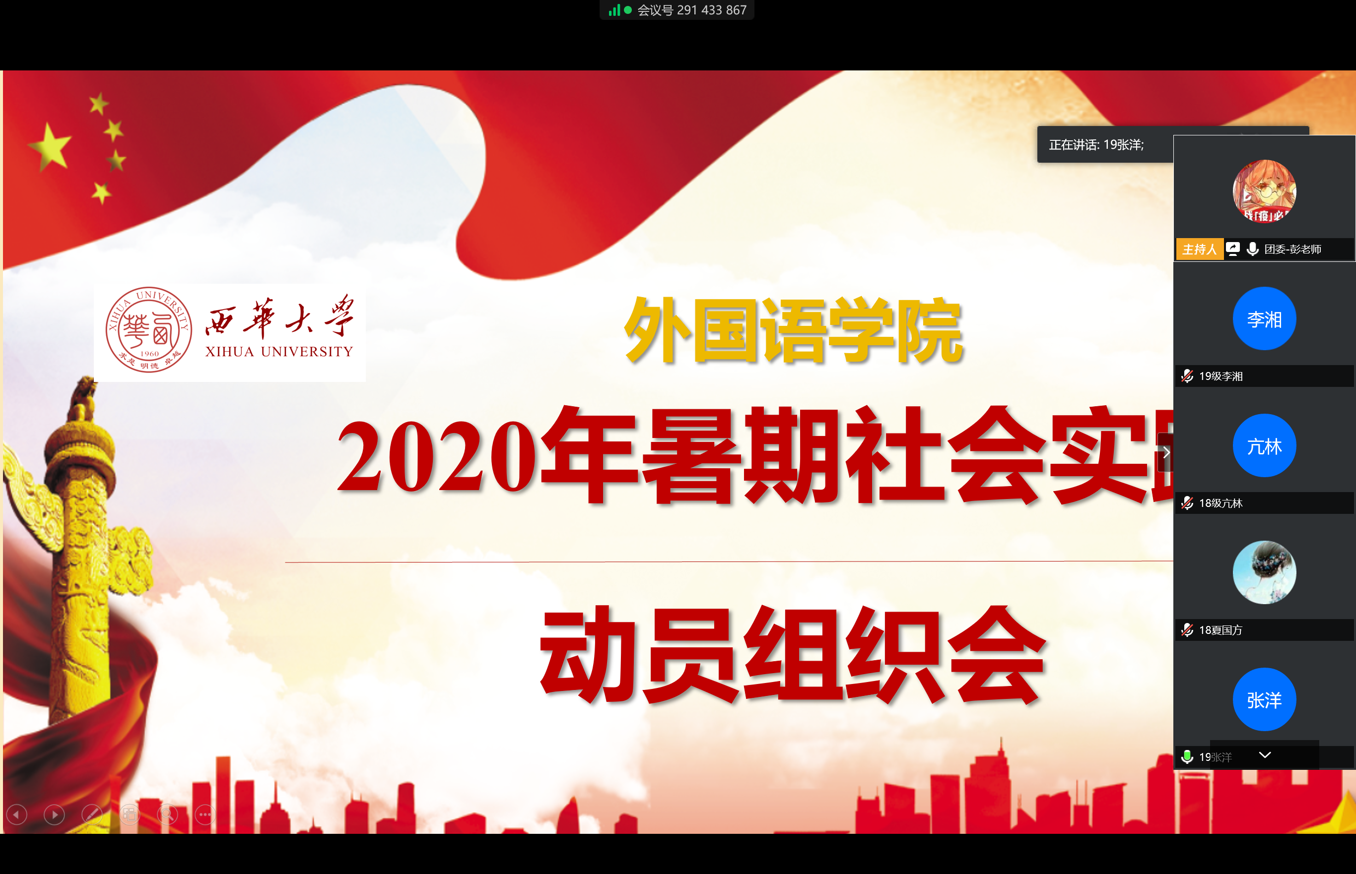 714日下午4:30,伟德国际1949在腾讯会议召开了2020年暑期社会实践活动动员大会,学院团委指导老师彭陈丽以及所有带队老师和队员参加了此次会议。会议由彭陈丽主持。