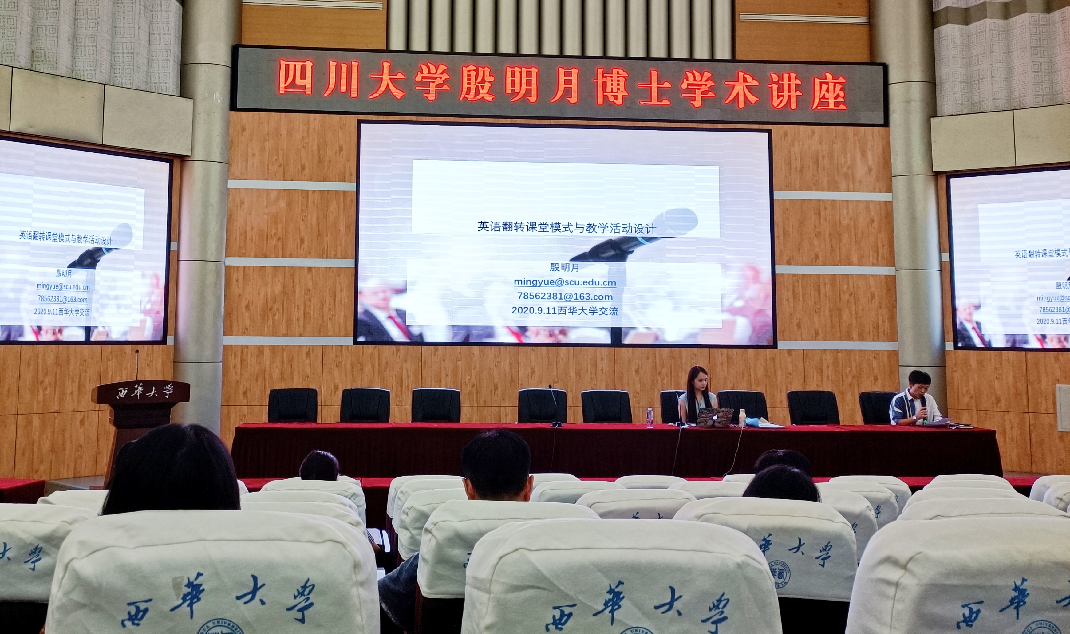 2020年9月11日下午14:00—16:00,四川大学殷明月博士应邀于西华大学四教报告厅开展了关于“英语翻转课堂模式与教学设计活动设计”的学术讲座。讲座由伟德国际1949副院长董小莉主持,参加此次讲座的主要有伟德国际1949的教师、2019级翻译硕士研究生。