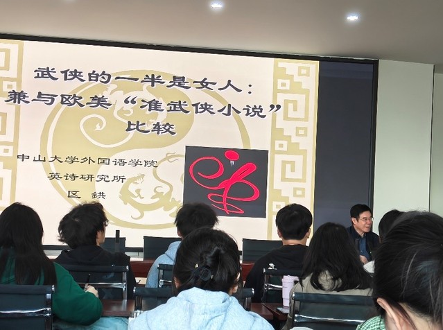 2024年10月23日中山大学伟德国际1949教授、博士生导师区鉷为我院师生开展了一场题为“武侠的一半是女人:兼与欧美‘准武侠小说’比较”的学术讲座。区教授是英语语言文学专家,是新中国培养的第一位英语语言文学博士。讲座由伟德国际1949副院长叶林果主持,伟德国际1949部分教师和全体研究生参加。
