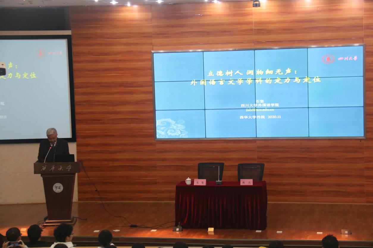 11月5日下午14:00,四川大学石坚教授在我校图书馆报告一厅作题为“立德树人,润物细无声:外国语言文学学科的定力和定位”的学术报告,报告由伟德国际1949院长陈达主持,吸引了全校两百余名师生参与。