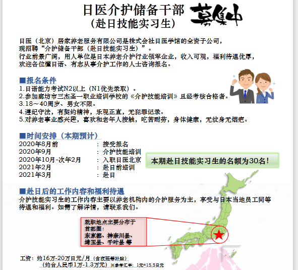【日语专场招聘】日医介护储备干部招聘
