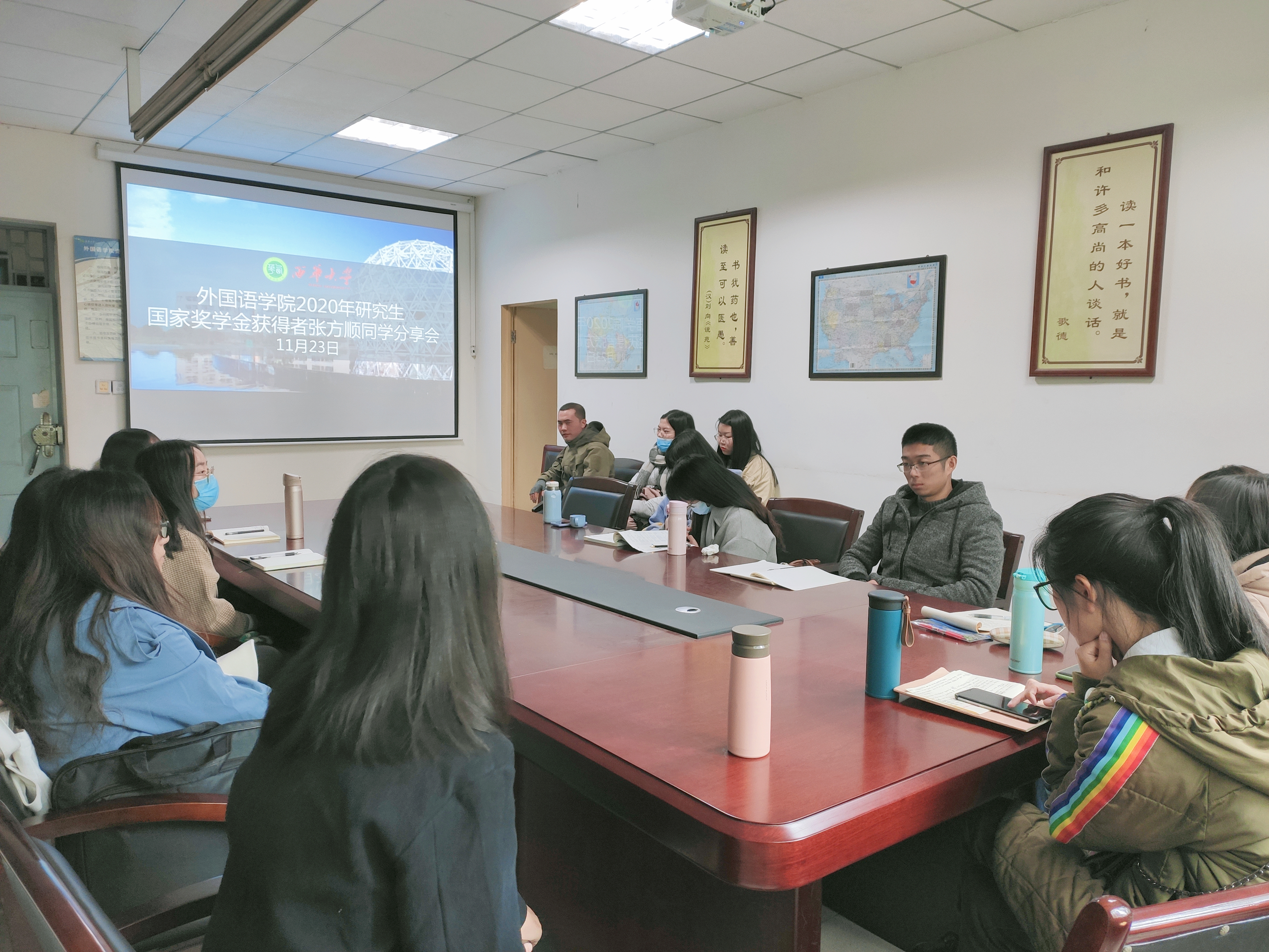 11月23日14时30分,伟德国际1949在学院资料室4B213成功举办了研究生国家奖学金分享会。本次分享会主讲人为伟德国际1949,伟德国际1949始于英国2018级翻译专业研究生张方顺同学。伟德国际19492019级、2020级研究生参与了此次分享会。