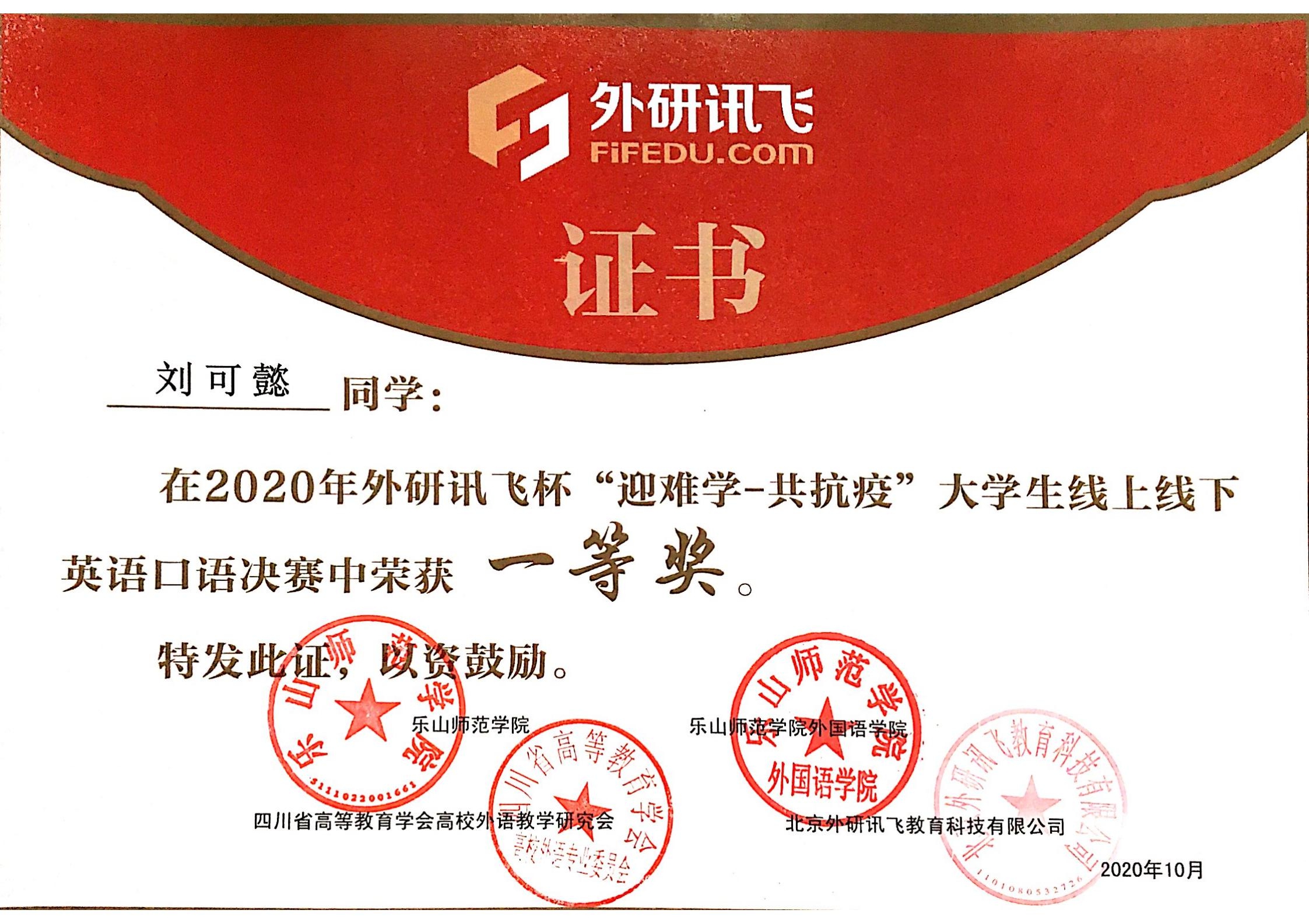 为贯彻落实习近平总书记关于疫情防控工作的重要指示精神以及教育部“停课不停学”的教学指导意见,由乐山师范学院主办、四川省高等教育学会高校外语教学研究会和北京外延讯飞教育科技有限公司协办的外研讯飞杯“迎难学-共抗疫”大学生线上线下英语口语大赛线上邀请赛圆满落幕。全省有西南交通大学、西南财经大学、西南石油大学、四川师范大学、西华师范大学、绵阳师范学院等共计38所院校积极参赛,参赛人数13849人。我校伟德国际19492019级翻译专业刘可懿同学在本次大赛中凭借出色的表现,获得本次比赛一等奖。