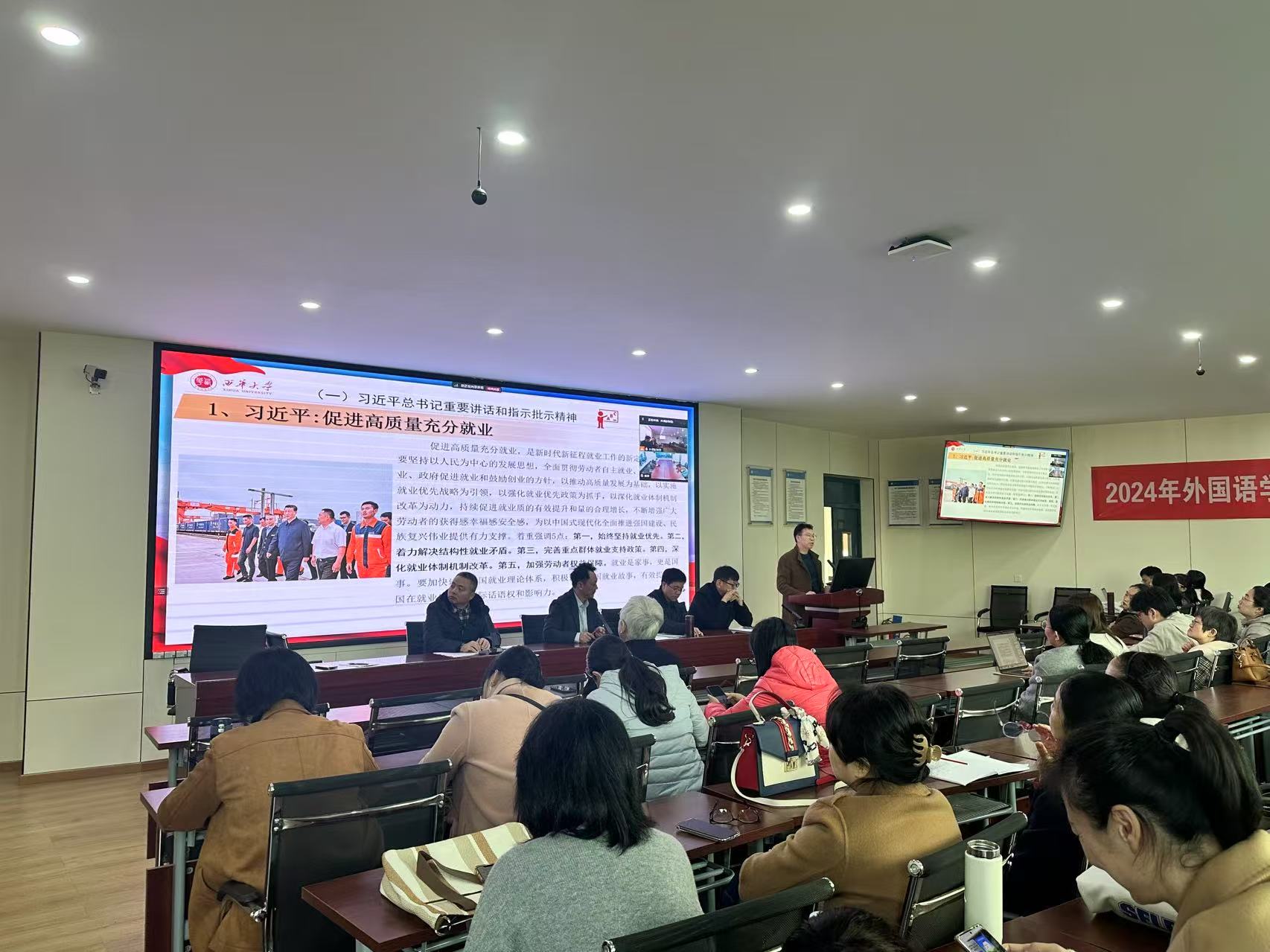党委副书记万志昂主讲了本月教职工政治理论学习。他带领教职工就习近平总书记近期重要讲话和指示批示精神、省委十二届六次全会精神和教师队伍建设相关文件,重点学习了习近平关于促进高质量充分就业的讲话,鼓励全院以更加饱满的精神状态投入到伟德国际1949始于英国和促进就业工作中。