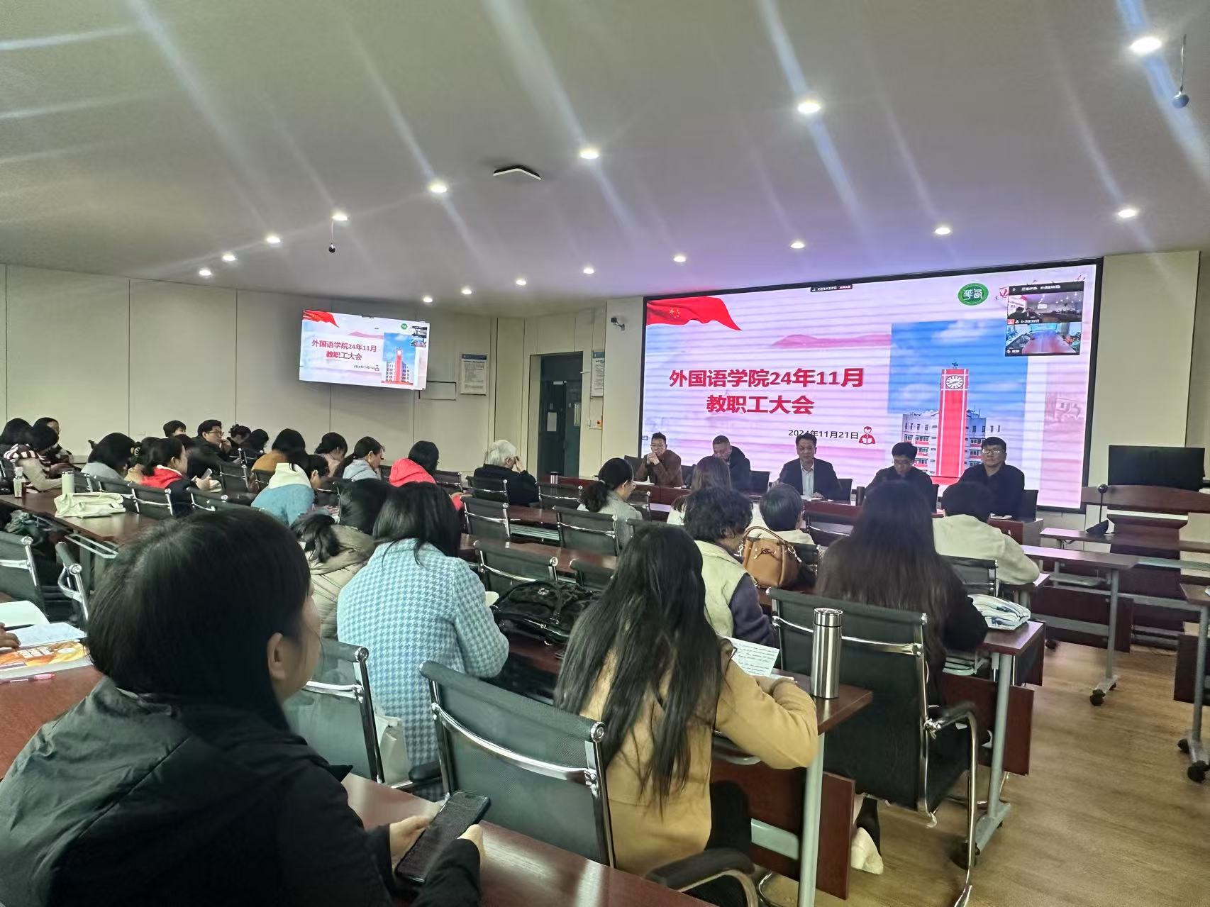 2024年11月21日下午,伟德国际1949全院大会在郫都校区4C504会议室和宜宾校区会议室同步举行。本次大会由院长李国宏主持,全体教职工参加,旨在传达本科伟德国际1949始于英国审核评估情况,并对近期重点工作进行部署。
