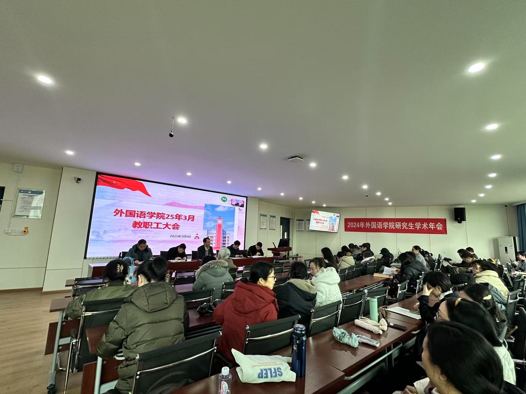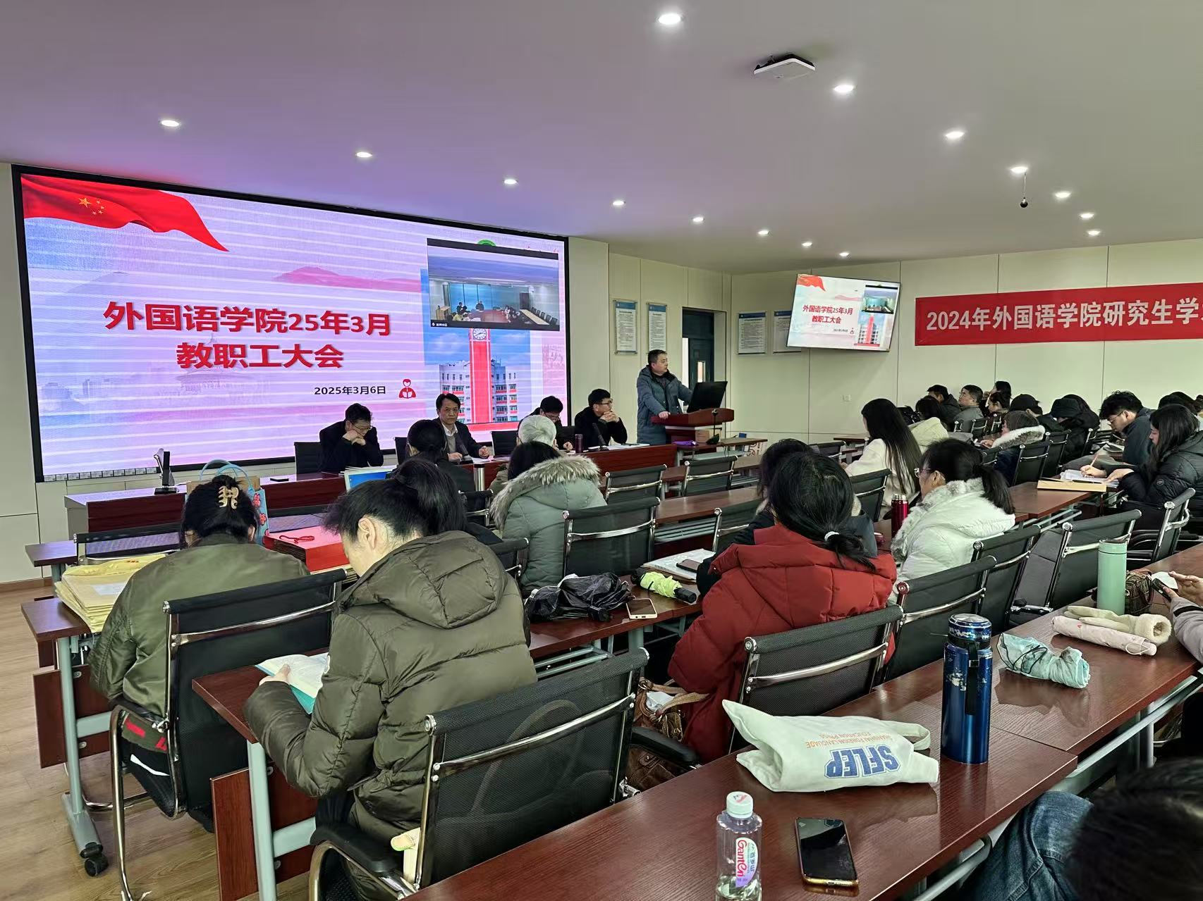 2025年3月6日下午,伟德国际1949全院大会在郫都校区4C504会议室和宜宾校区会议室同步举行。本次大会由学院党委书记唐润华主持,全体教职工参加。