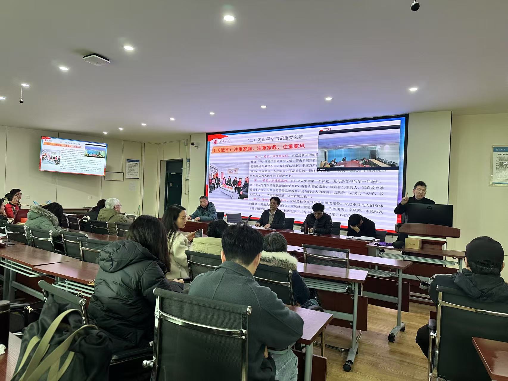 党委副书记万志昂主讲了本月教职工政治理论学习。他带领教职工学习了习近平总书记最近重要讲话和指示批示精神、2025年全国教育工作会议精神、2025年四川省两会精神,重点学习了习近平总书记关于《注重家庭,注重家教,注重家风》的重要文章和习近平在二十届中央纪委四次全会上发表重要讲话,强调要坚持用改革精神和严的标准管党治党,坚决打好反腐败斗争攻坚战持久战总体战。