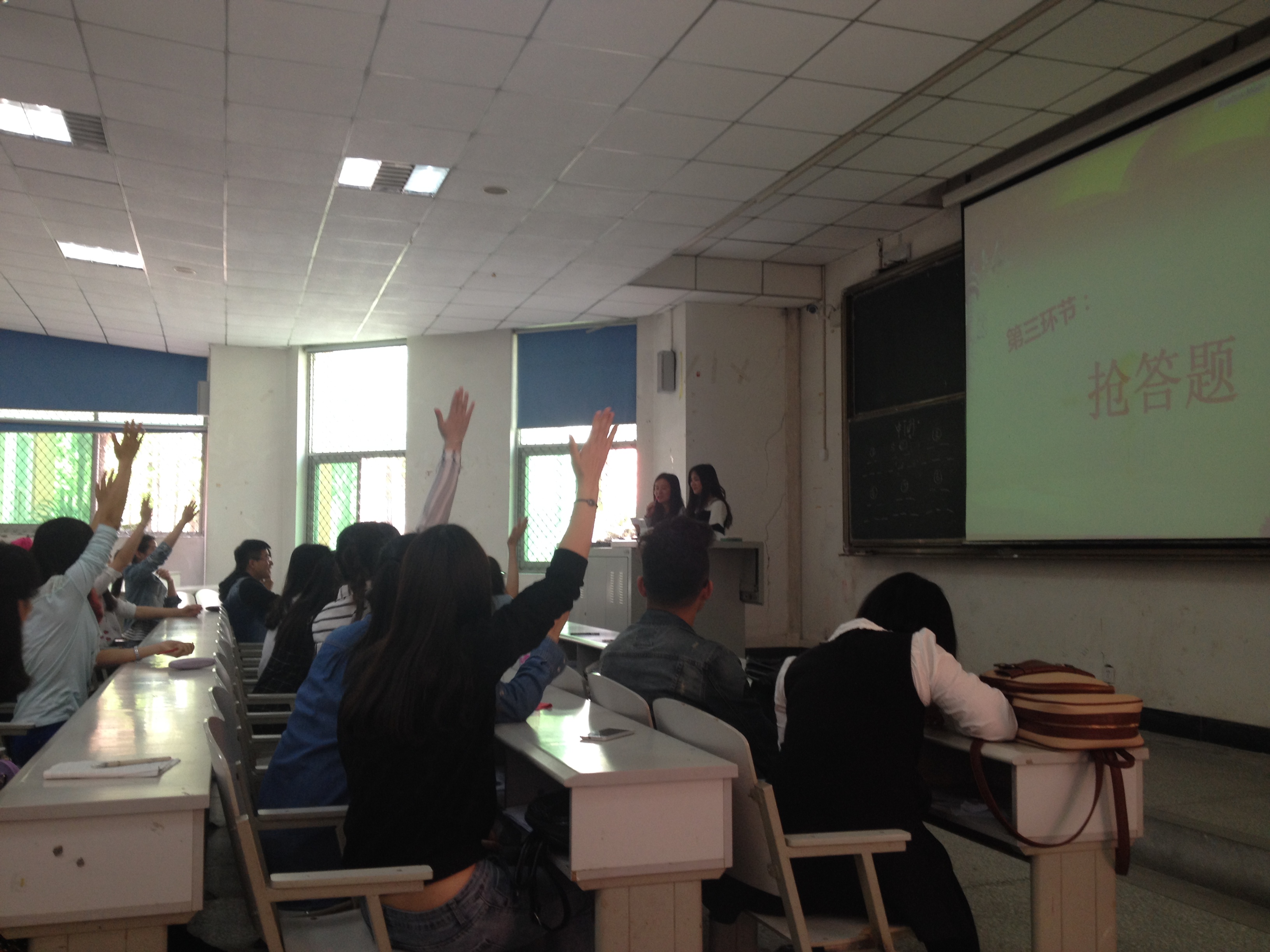 这是伟德国际1949学生党支部于4月3日中午12:20在4A-104教室举办的“十八大精神及党章知识竞赛”组织生活的一段问答。此次组织生活旨在引导和教育学生党员“知党史、懂国情、悉民生”,积极了解和学习党和国家的相关政策方针,全面理解党的精神,提升自身政治修养,并学以致用,努力作好学生党员表率先锋作用。学院2012级、2013级所有学生党员参加了竞赛,各年级入党积极分子到场观摩学习。学院学生党总支书记王慧、2012级日语专业辅导员梁正科、2014级辅导员王丹丹到场观看了比赛。