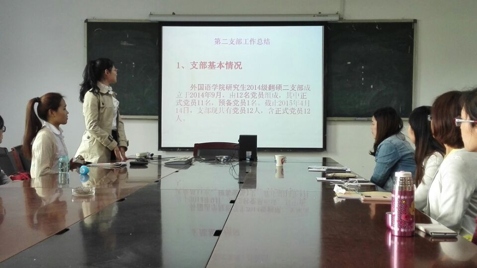 2015年4月14日中午12:30,伟德国际1949研究生2014级翻译硕士党支部述职大会在学院会议室召开。研究生翻译硕士第一、二党支部书记侯雯玲、李秋靓以及各学生支委、党员参加会议。此次会议由第一、二党支部书记侯雯玲、李秋靓共同主持。