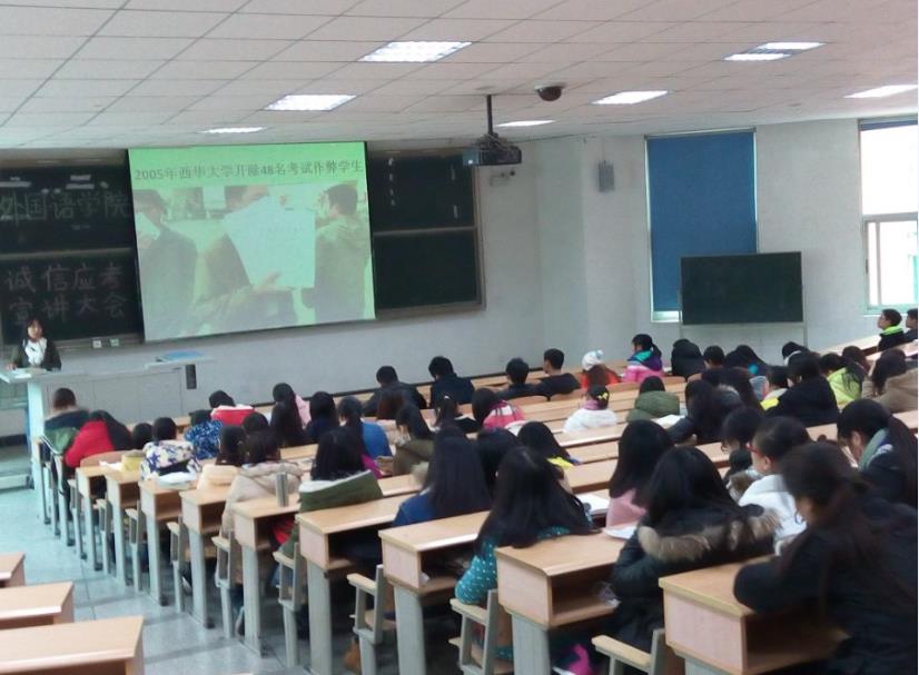 孔子说:“言必诚信,行必忠正”。“诚信”永远是一个经久不衰的话题。学习部同学周艳迪就“诚信”二字发言,以2005年西华大学开除48名作弊学生为例,说明了诚信的重要性。然后,王丹丹老师就“诚信应考”讲话。她指出:从中学到大学,每位老师都会提及诚信考试,这说明应考的诚实性是非常重要的。接着,王老师以本年度11月份的几个学生考试作弊的案例为例,说明了考试违规行为的严重性,并以此提出了自己的希望:端正心态,切勿存在侥幸心理。期间,王老师突出强调了考试的意义—让竞争在平等、公平、和谐的环境中展开,让一切的付出和回报都真实、纯净。这让同学们感悟颇深。