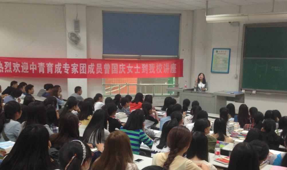 1010号下午13:30分,以“转变,从大一开始”为主题的中青育成讲座在4A207举行。来自中青育成教育集团的优秀讲师曾国庆女士为大家带来了精彩难忘的讲座,辅导员王丹丹及2014级学生参加了此次会议。
