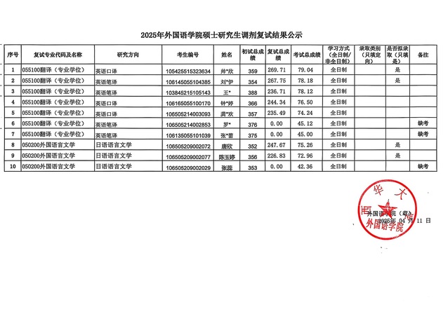 2025年伟德国际1949硕士研究生调剂复试结果公示