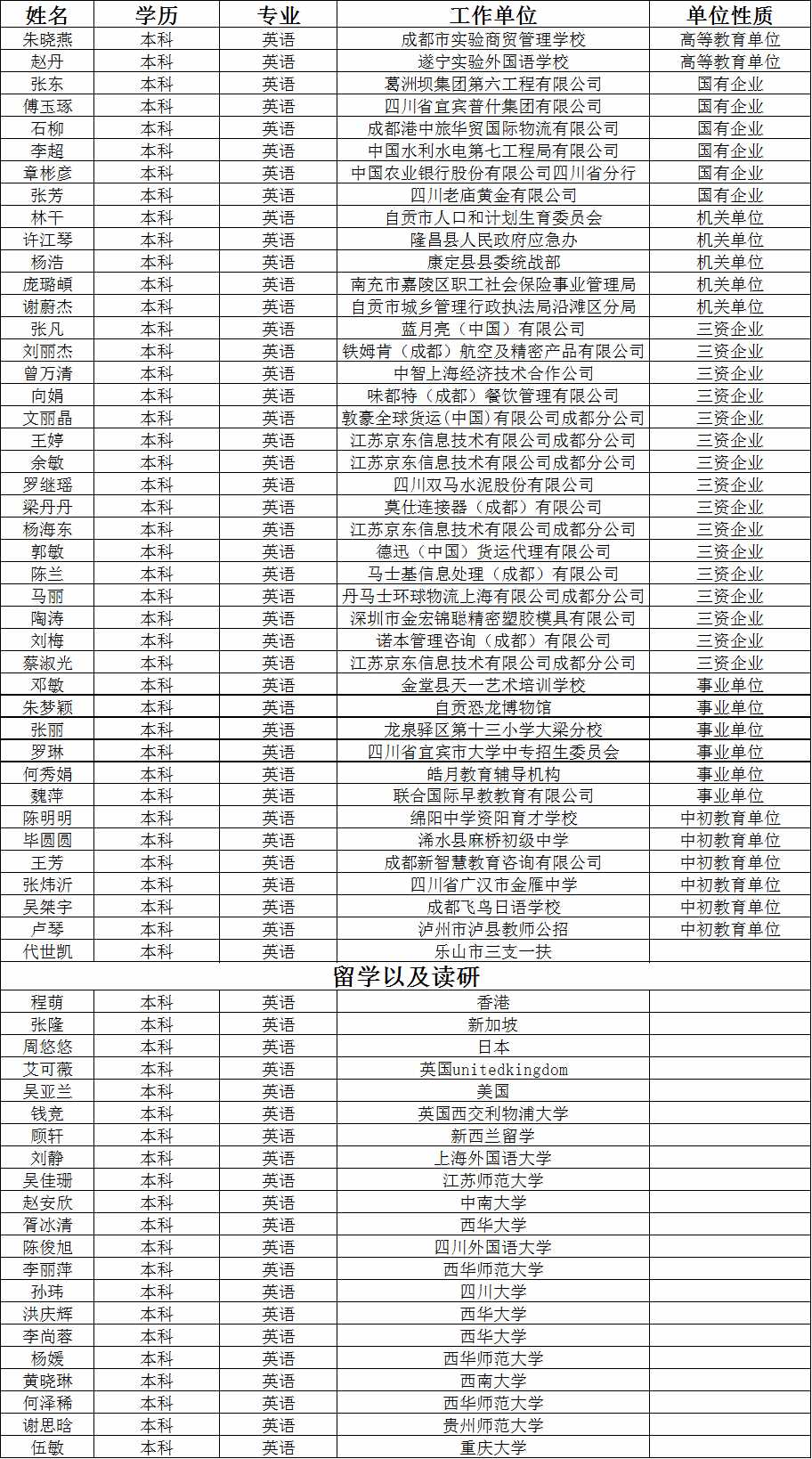 2014届英语毕业生