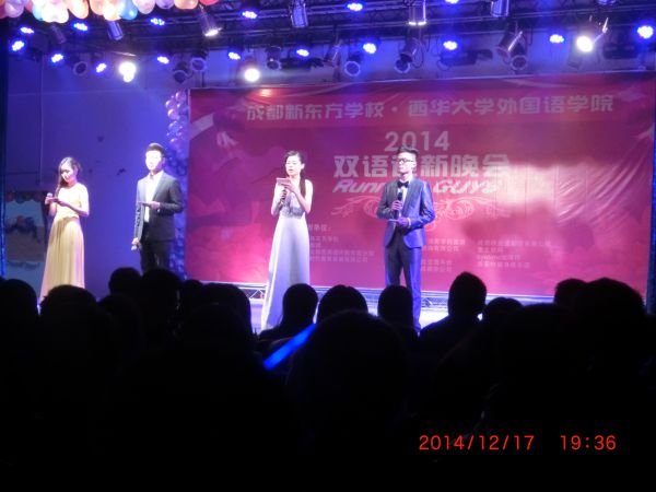 晚会除了表演形式多样的节目外,还进行了颁奖典礼。学院特邀成都新东方学校,启政时代等数十家机构分别向获得国家级、省级英语竞赛的同学颁奖,同时还表彰了先进个人、优秀寝室以及优秀室长等,给予了同学们极大的鼓励。