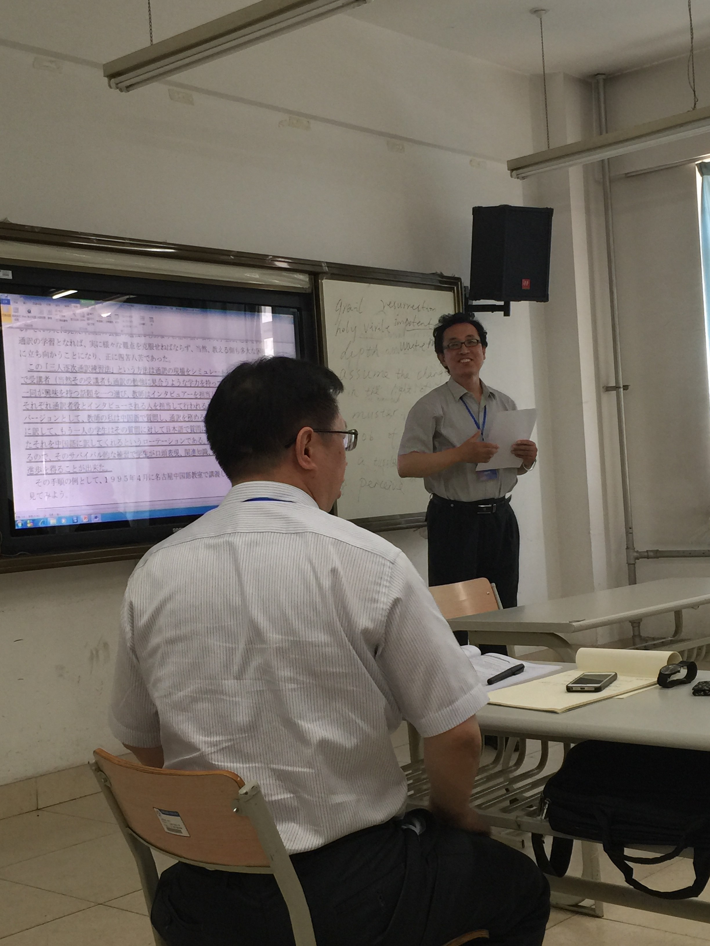 5月30上午开幕式后,日本国际交流基金北京日本文化中心专家平田好、北京外国语大学徐一平教授、台湾政治大学于乃明教授、天津外国语大学修刚教授先后在论坛发表了主旨演讲。下午按主题分为四场工作坊专题研讨,浙江工商大学王宝平教授、四川外国语大学姚继中教授、西安外国语大学毋育新教授、北京师范大学冷丽敏教授先后主持了专题研讨。清华大学王婉莹教授、吉林大学周异夫教授、上海外国语大学许慈惠教授、大连大学宋协毅教授、华中师范大学李俄宪教授、北京外国语大学于日平教授、东北师范大学徐冰教授等分别就相关专题的情况作了发言。5月31日上午为分科发表会,发言者主要就日语专业教学法进行了精彩的主题发表,我院教师也分别参与相关主题的发表并与参会者进行了讨论,同时在会议期间跟与会日语专家进行了深入的交流。通过此次会议,我院日语专业教师对国家标准与大纲的修订内容和国内目前高校日语专业教学现状和方法有了更深入的理解和认识,对我院日语专业的建设和发展有着举足轻重的推动作用。