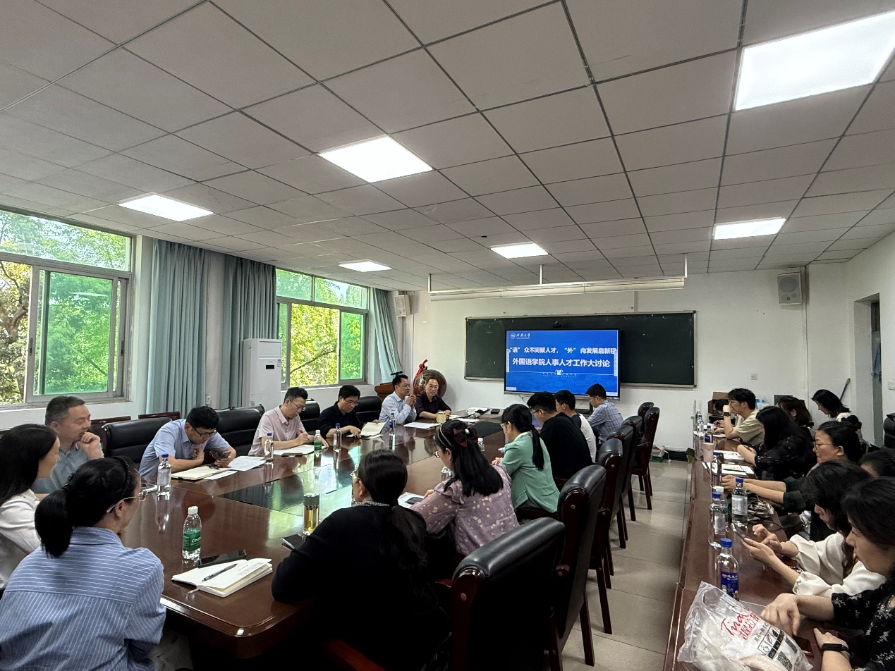 2025 年 4 月 17 日下午 15 点 30 分,伟德国际1949在 4B317 会议室举行了一场以 “‘语’众不同聚人才,‘外’向发展启新程” 为主题的人事人才大讨论工作研讨交流会。此次会议聚焦高层次人才外引、内培,学院班子成员、系部及三办主任、支部书记、学术委员会委员、副教授代表、讲师代表以及青年博士代表参会研讨,会议特别邀请了人事处副处长宋潇潇列席交流,为学院人才工作提供更具全局性和前瞻性的指导。