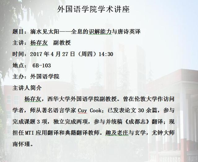 2017年4月27日学术讲座(主讲人:杨存友 副教授)
