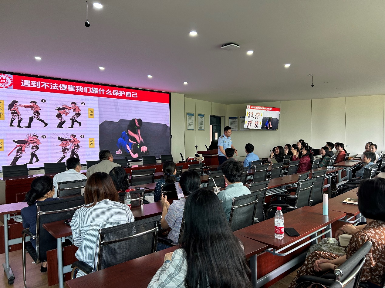 会议最后,利民消防局胡教官为全体教师带来一场消防应急安全知识讲座。胡教官结合实际案例,详细讲解了火灾预防、应急逃生技巧以及消防器材的正确使用方法,有效增强了教师们的消防安全意识和应急处置能力。