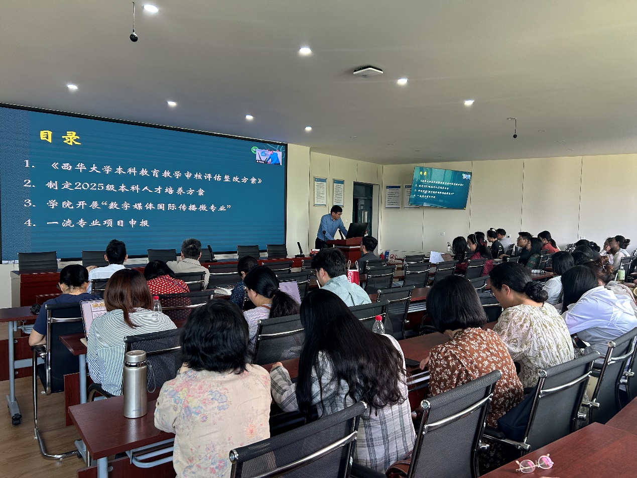 2025 年 4 月 24 日下午 3 点,伟德国际1949全院大会在郫都校区 4C504 与宜宾校区会议室同步开展。本次大会由学院院长李国宏主持,全体教职工参加。