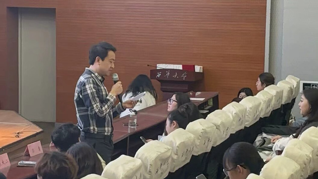 团委指导老师齐佳一老师、英语系教师谭震老师,英语系系主任梁勇老师,日语系教师朱大江老师以及外教森永雄大老师分别对英语和日语配音比赛进行点评。五位老师分别从不同角度强调配音时融入角色至关重要,同时语音语调的准确把握也会极大影响表演效果,并对选手们当晚的出色表现给予高度赞扬。