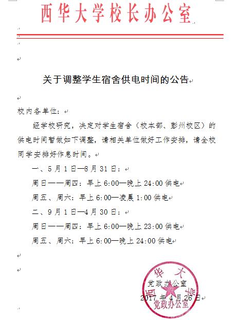 关于调整学生宿舍供电时间的公告