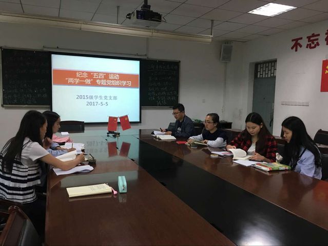 5月5日中午,伟德国际19492015级学生党支部在伟德国际1949行政会议室开展了纪念“五四”运动暨“两学一做”专题理论学习,六名预备党员和党支部书记梁正科老师参加学习会。