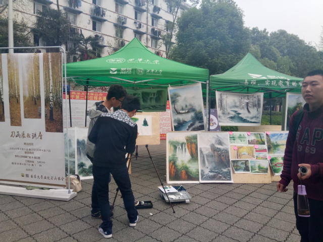 在写生环节,协会在马尔代夫畔,西华记忆等处现场写生作画,精美的作品吸引了不少同学驻足观看。在摆点期间,捷克留学团的留学生们也来到现场,对精美的画作赞叹不已。会长杨天生表示:“每学期我们都会举办至少一次刀画作品展,我们想要把刀画传播得更广,希望有更多的人认识、了解刀画。”