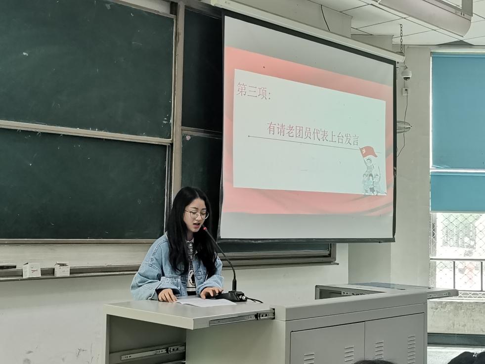 为了表示对新团员的欢迎,刘璐同学代表老团员上台作了发言。在发言中,刘璐同学提到,作为一名共青团员,我们应感到无比的光荣和自豪,同时也不要忘记我们身上寄托着团的希望,背负着团的重任。最后刘璐同学发出号召:让我们新老团员共同努力,把青春献给团组织,把祖国建设的更加美好!