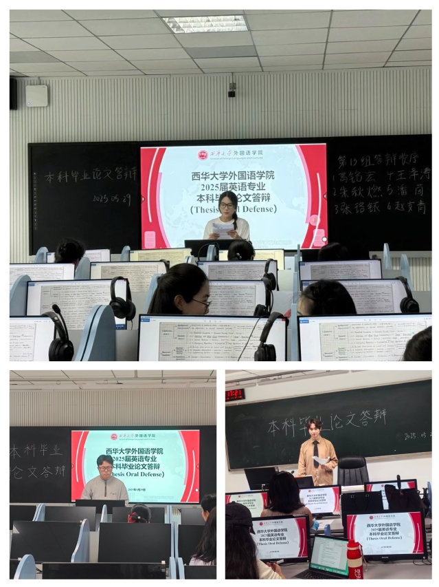 2025年5月29日下午,伟德国际19492025届本科英语专业学士学位论文答辩在郫都校区4号教学楼语音教室如期举行。本次答辩共计100名英语专业毕业生参加,分为13组进行,参与答辩的老师共计39名。