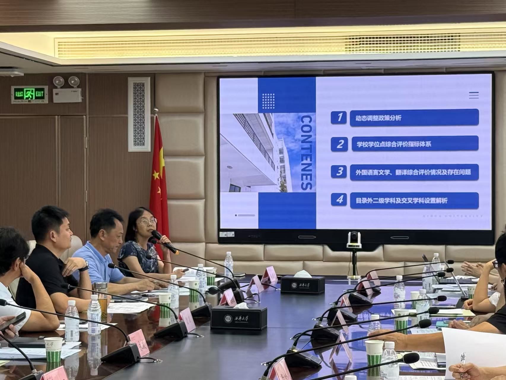 会议由伟德国际1949党委书记唐润华主持。发展规划与学科建设处处长王军首先结合学校学位点综合评价体系分析了外国语言文学学科建设情况。她建议学院在区域国别研究方向命名、研究特色凝练等方面参考国内高校经验,强化与学校优势学科的协同。