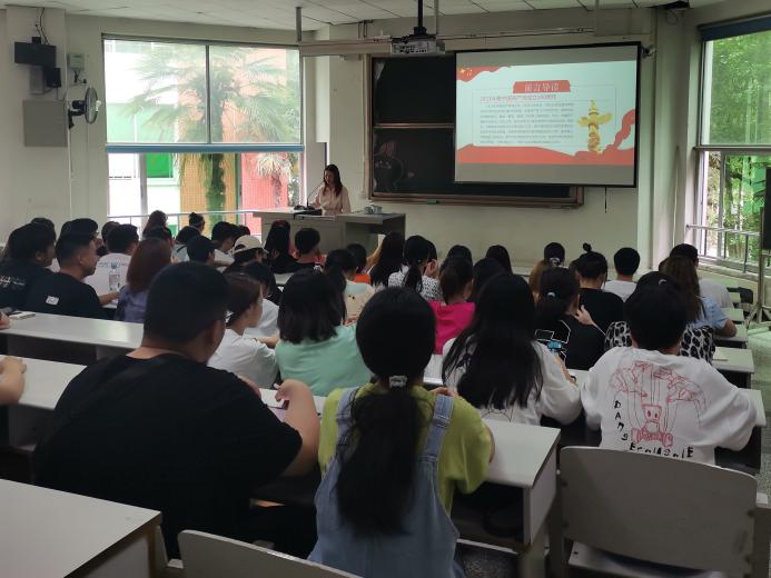 大会上,彭陈丽老师以“学党史,强信念,跟党走”为主题带领同学们一起回顾了中国共产党的峥嵘岁月。始终坚持党的领导,关键在于要朝着建设中国特色社会主义的伟大事业和实现中华民族伟大复兴的宏伟目标奋勇前进。一百年来,不管是从无到有的伟大革新,还是不断推进马克思主义中国化的征程都从未停下脚步。