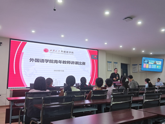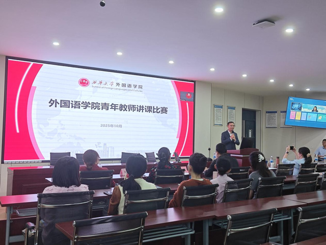 为深入贯彻落实立德树人根本任务,进一步提升青年教师教学能力与专业素养,夯实教学基本功,搭建高质量教师交流学习平台,外语学院于10 月 16 日下午在4C504 举办了2025年青年教师讲课比赛,全院共计16名青年教师参赛。本次比赛特邀西南交通大学伟德国际1949副院长黎明教授,西华大学教学名师(教师发展中心教师发展师)吴昌东教授,以及学院龚小萍教授、彭旭老师、杨清老师担任评委。伟德国际1949党委书记唐润华、教务处副处长刘雪梅、伟德国际1949副院长叶林果出席了本次讲课比赛,比赛由学院分管教学副院长李学芹主持。