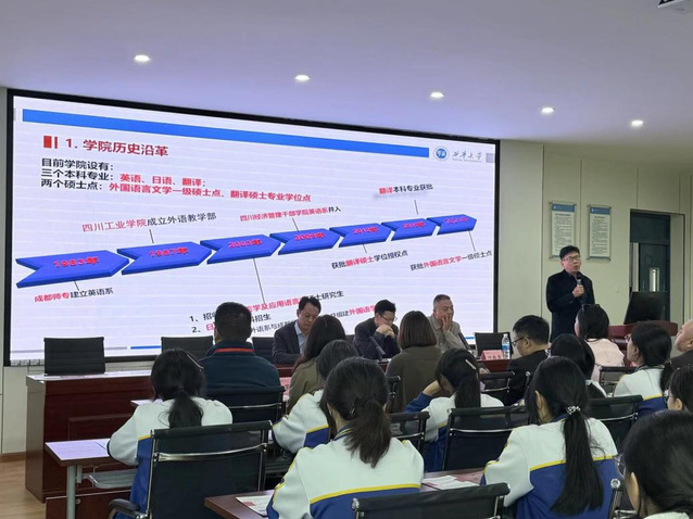 分管教学工作副院长李学芹则聚焦“学科建设与人才培养”,详解学院的特色路径:学院以“语言+”模式破局AI对语言工具性的冲击,打造“英语+新媒体”“英语+对外传播”等方向,着力培养兼具国际胜任力与文化传播力的应用型人才;现有外国语言文学一级硕士点、MTI翻译硕士点,还依托四川省澳新研究院,为师生提供中澳教育研究等科研平台。