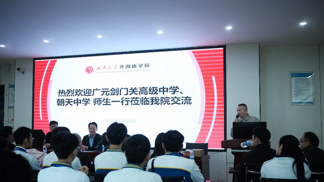 活动尾声,叶林果副院长宣布课堂观摩分组:剑门关高级中学以及朝天中学分别前往学院语言实验室观摩了日语视听说(3)》,《英语写作3》,《英语口语1》课程。志愿者们笑意盈盈地引导队伍出发,教室里的琅琅书声与互动研讨,让中学师生真切触摸到大学课堂的鲜活与深度。