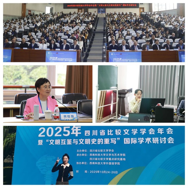 2025年10月24至26日,四川省比较文学学会2025年年会暨“文明互鉴与文明史的重写”国际学术研讨会在四川省绵阳市召开。此次会议由四川省比较文学学会主办,西南科技大学文学与艺术学院、四川省比较文学重点研究基地承办,西南科技大学伟德国际1949协办。伟德国际1949副教授何桂娟、曹美琳博士、王洵博士受邀出席参会。